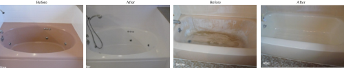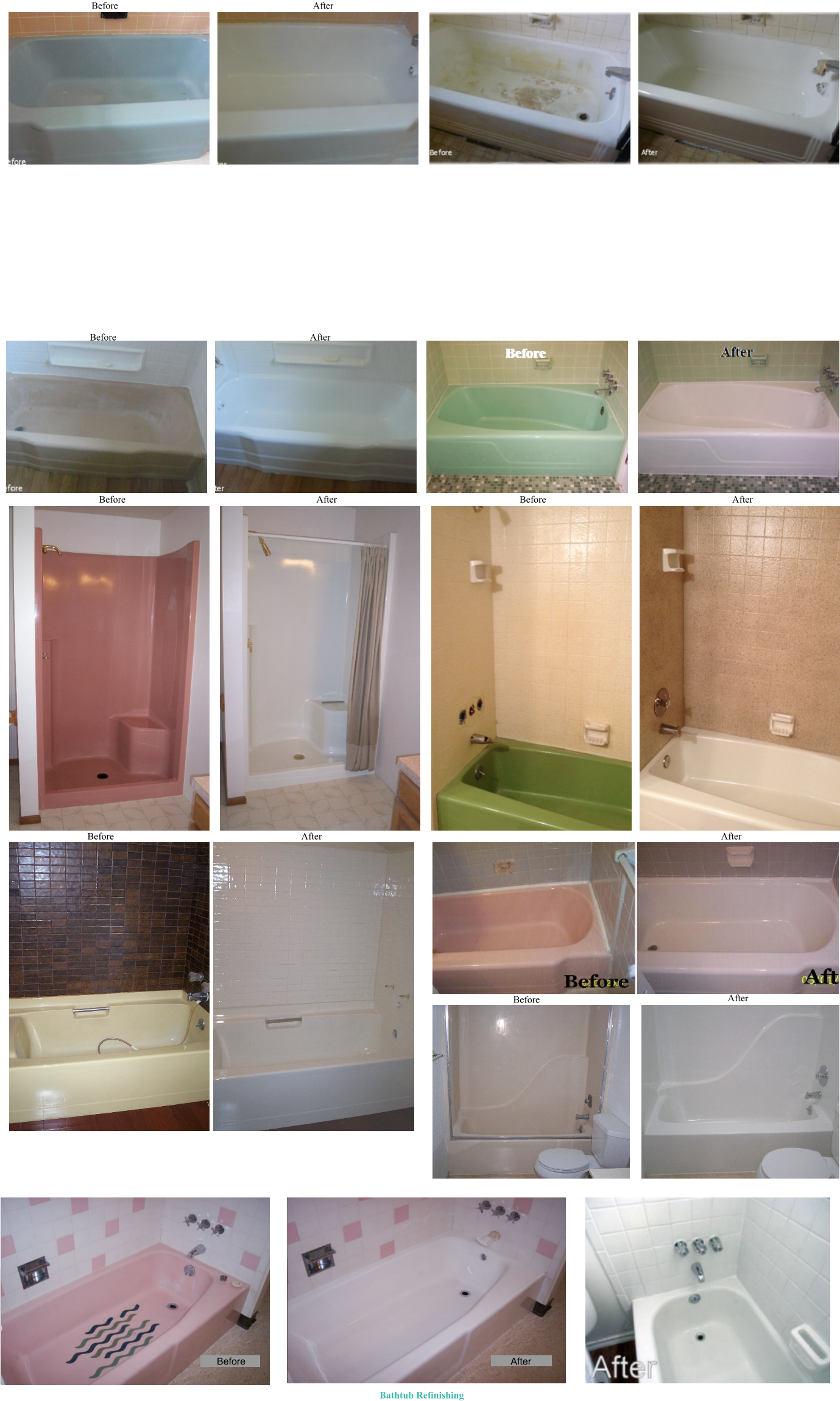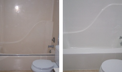 Refinishing is an economical way to beautify your bathroom. When new, your bathtub surface is nice and shiny. As time goes on however, your tub's surface can dull, get damaged by acidic or abrasive cleansers, fade or look outdated. The original homeowner's color choice may not go with your neutral decorating theme. The tub can be nicked or scratched. Replacing a bathtub is time consuming, expensive and messy. It is now the time for a bathtub resurfacing. This will save up to 80% of the cost of tub replacement. We can do the job in one day, without removing the tub. If there are any repairs to be made, they are done first. Then we use a tried and perfected method to thoroughly clean and prepare the surface before the tub reglazing. After the new coat is applied, in 24 hours your tub is ready to use. It will have the same luster as a new tub, and will be easy to keep looking clean and beautiful.